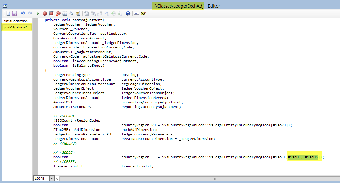 Im dritten Schritt findet eine Erweiterung der „LedgerExchAdj“ Klasse auf die Länder Deutschland und USA statt.