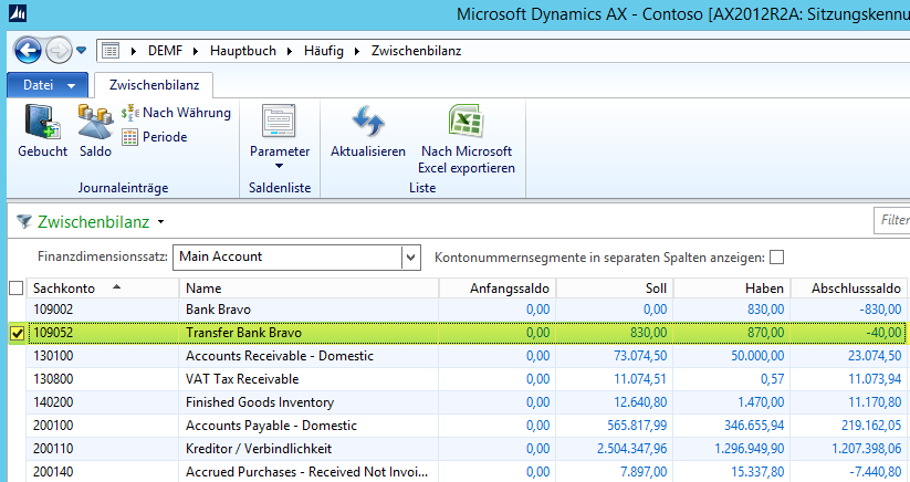 Um nun diese Differenz zu „bereinigen“ wird im Hauptbuch eine Kursregulierung für das Zahlungstransferkonto angestoßen, die dazu führt dass der Saldo auf dem Zahlungstransferkonto glattgestellt wird.