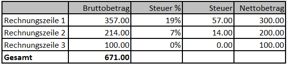 Betrachten wir zunächst die Standard Splitbuchungsfunktion und wie diese für die Eingabe der folgenden Rechnung genutzt werden kann: