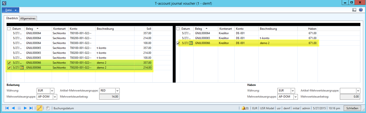 Wenn Sie mit der Handhabung der im Standard von Dynamics AX verfügbaren Splitbuchungsfunktion Probleme haben, dann kann Ihnen die im Folgenden beschriebene T-Konto Funktion evtl. Erleichterung verschaffen.