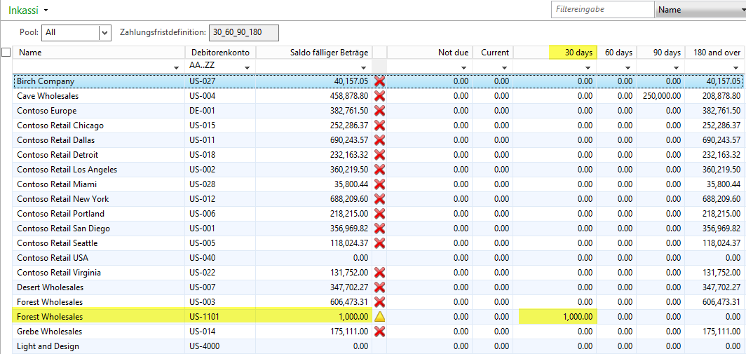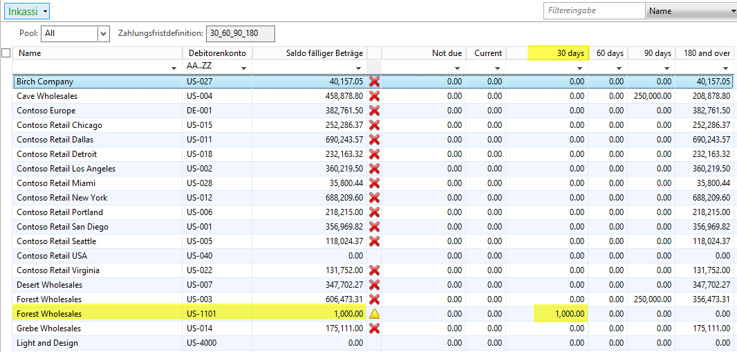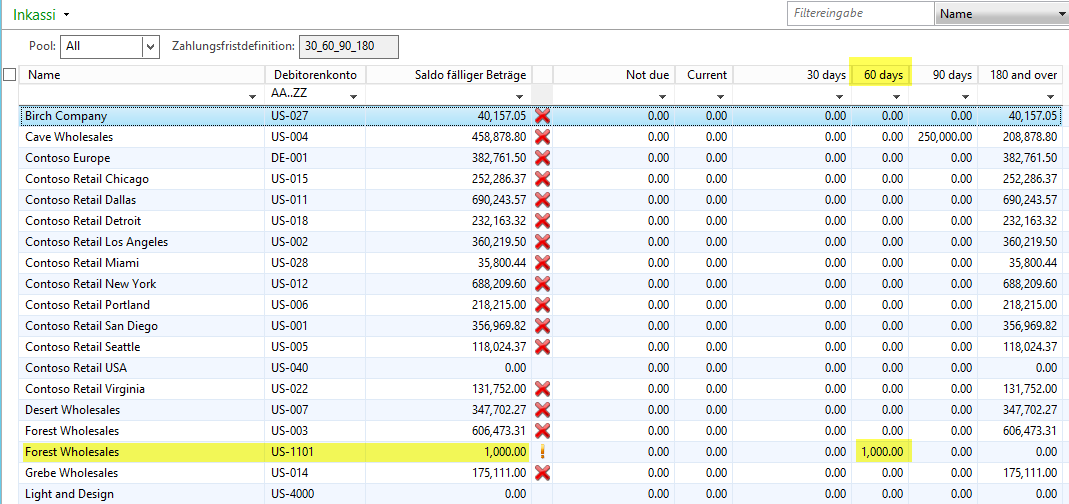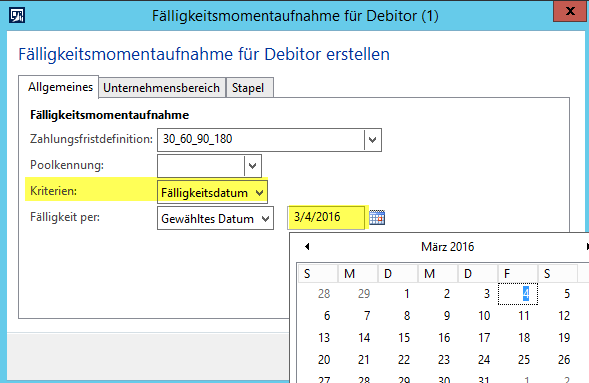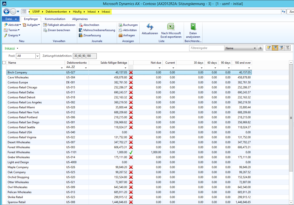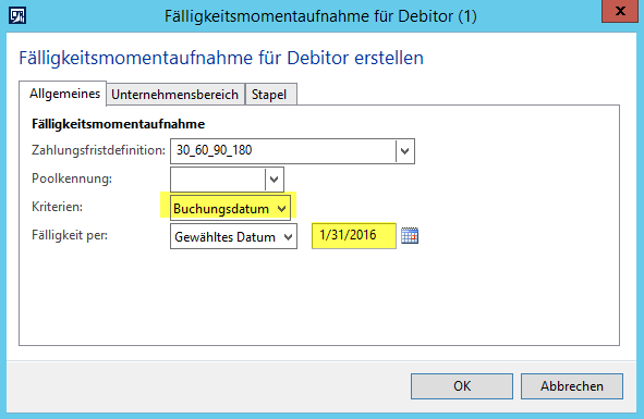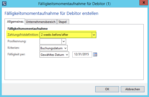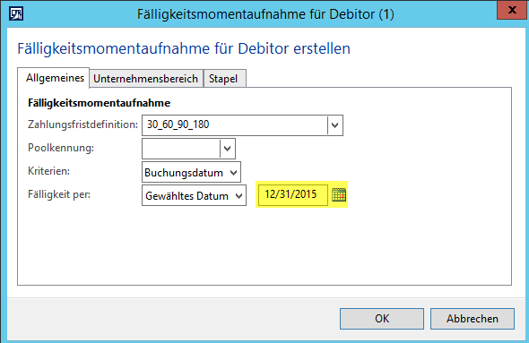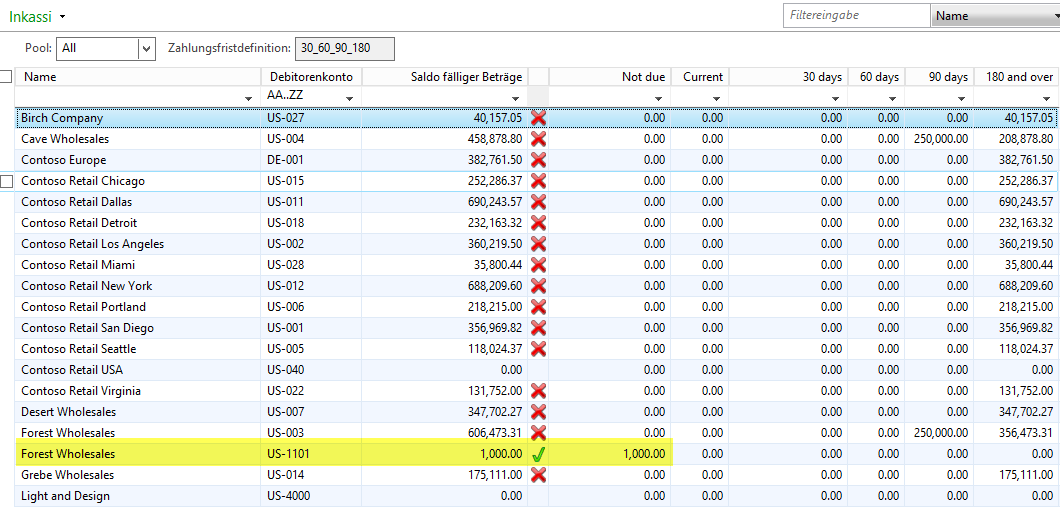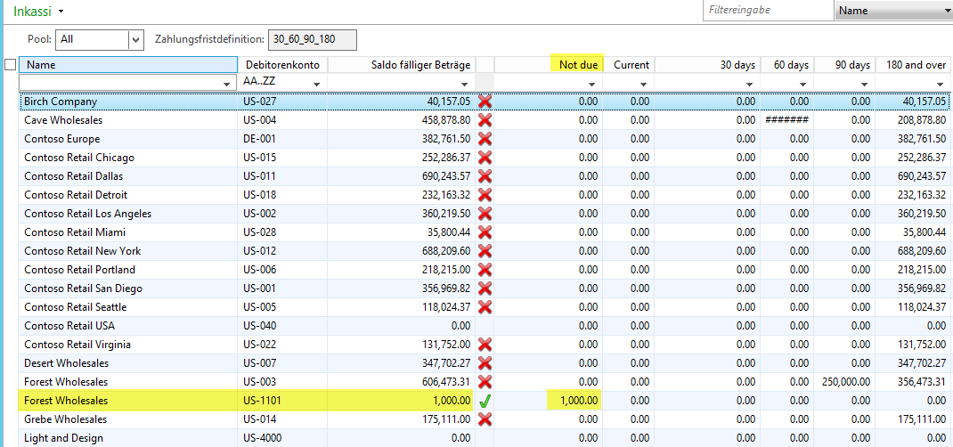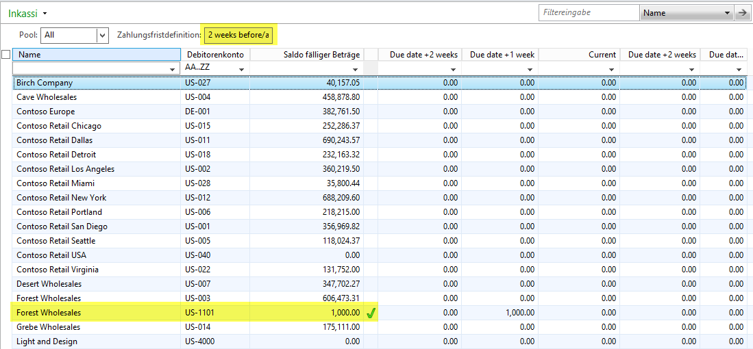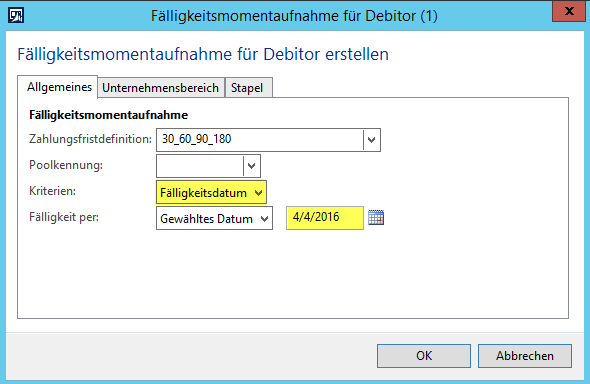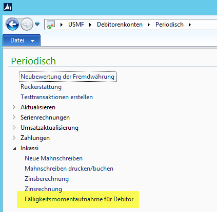 Dynamics AX, Fälligkeitsmomentaufnahme, Inkassi