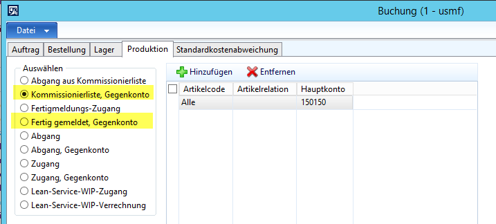 Bitte beachten Sie, dass der Fremdfertigungsartikel mit einer Lagersteuerungsgruppe eingerichtet wurde, die sowohl den Parameter für die physische Bestandsbuchung als auch den Parameter für wertmäßige Bestandsbuchungen aktiviert hat. Ohne die Aktivierung dieser Parameter wären die Produktionsbuchungen aus Finance & Controllingsicht unvollständig / falsch.