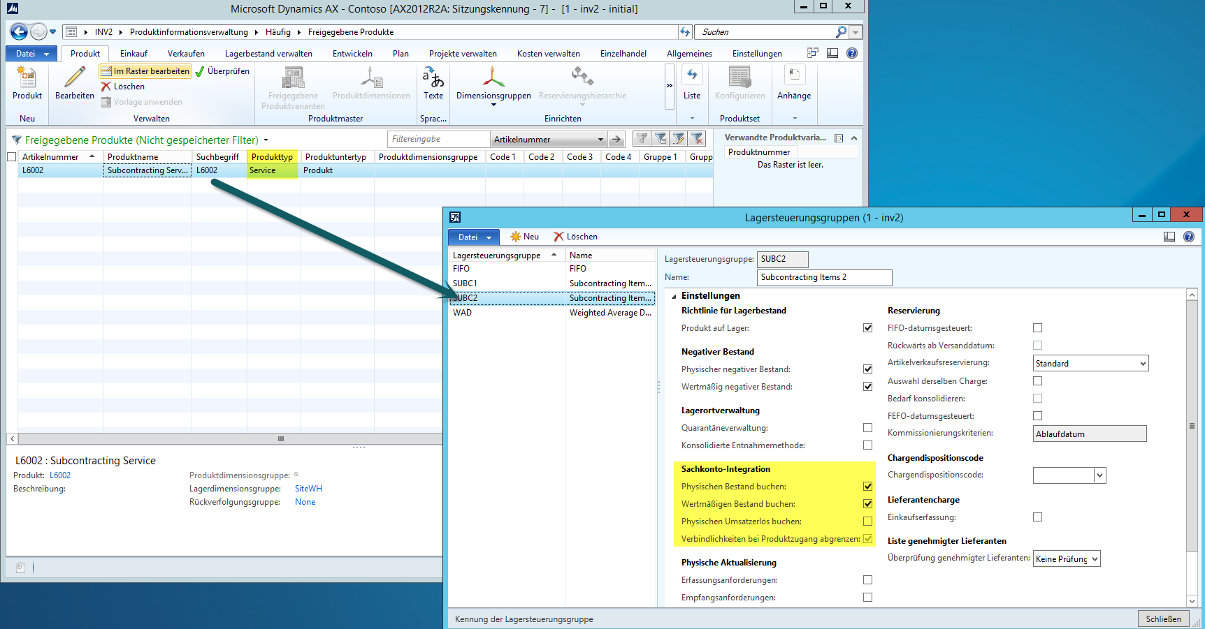 Ein weiterer Problembereich des Lagerwertberichts besteht im Zusammenhang mit Serviceartikeln, die im Rahmen von Fremdfertigungsprozessen eingesetzt werden. Den Dynamics AX Handbüchern und den Informationen auf TechNet zufolge sind solche Artikel als „bestandsgeführte Dienstleistungsartikel“ einzurichten (siehe z.B. die Ausführungen auf der folgenden TechNet Seite).
