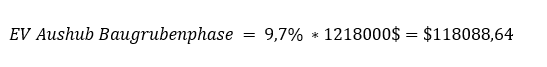 Wie weiter oben erwähnt ermittelt sich der EV aus dem Produkt von Fertigstellungsgrad und Planwert. Für die erste Projektphase ergibt sich – von Rundungsdifferenzen abgesehen – somit folgender EV: