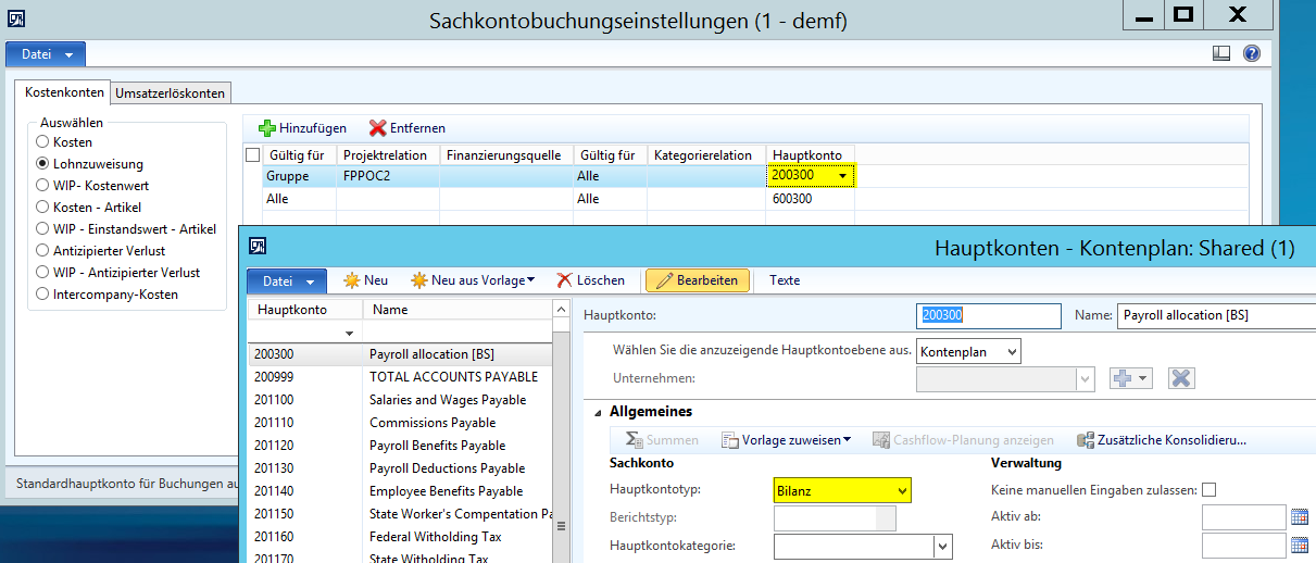 Wie weiter oben erwähnt, werden alle Stunden- und Aufwandsbuchungen auf dem Festpreisprojekt erfasst, welches alle Kosten – zumindest vorläufig – auf Bilanzkonten einstellt. Aufgrund dessen würde die Verwendung eines GuV-Kontos für Lohnzuweisungsbuchungen einen unmittelbaren Ergebniseffekt hervorrufen, da im Soll ein Bilanzkonto, im Haben allerdings ein GuV Konto angesprochen wird.