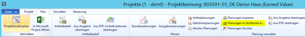 Im zweiten Schritt wurden die Planwerte aus dem Projektstrukturplan in die Projektplanungsmasken und das Sachkontobudget, d.h. das Budgetmodul, übertragen.