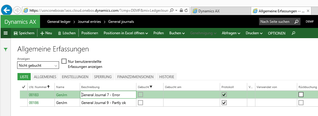 Nachdem auch hier die fehlerhaften Journale erwartungsgemäß nicht gebucht wurden und ich ein neues Buchungsjournal angelegt habe…