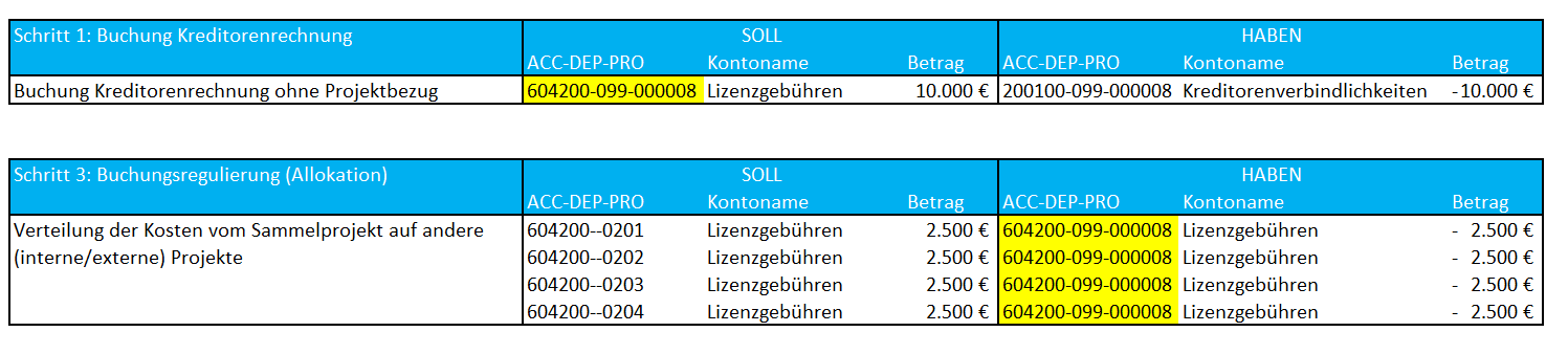 Um die einzelnen Buchungen besser nachvollziehen zu können, habe ich diese in der folgenden Übersicht nochmals zusammengefasst.