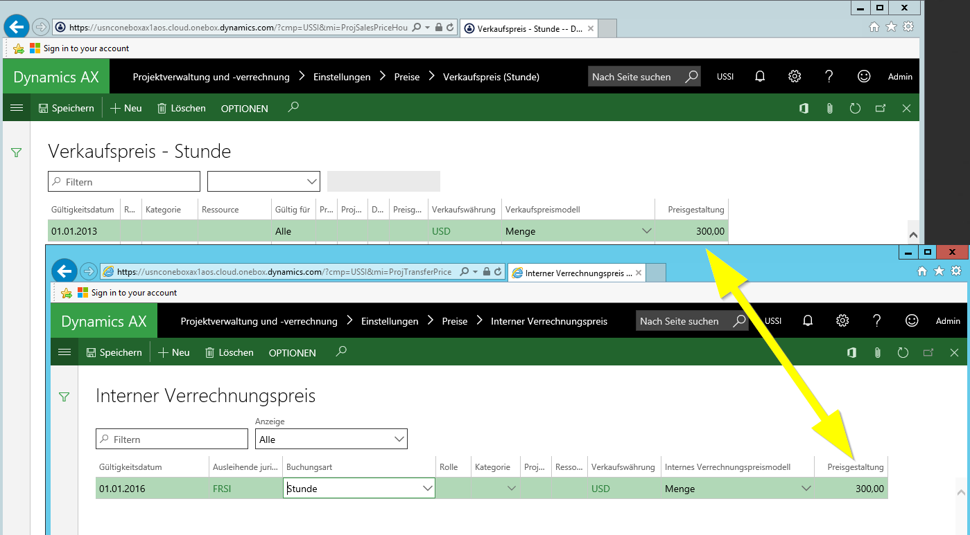 Basierend auf dem grundlegenden OECD arm’s length Prinzip wurde für das hier verwendete Beispiel ein Verrechnungspreis in Höhe von 300 USD festgelegt, welcher dem Preis entspricht, den auch externe Kunden berechnet bekommen. Siehe hierzu den folgenden Screenshot.