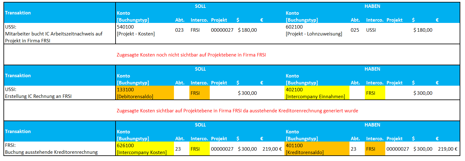- Erstens, dass die Kosten für die erfassten IC-Stunden auf dem zugehörigen Projekt in der Firma FRSI erst mit Buchung der IC-Rechnung, nicht aber vorher identifiziert werden können.