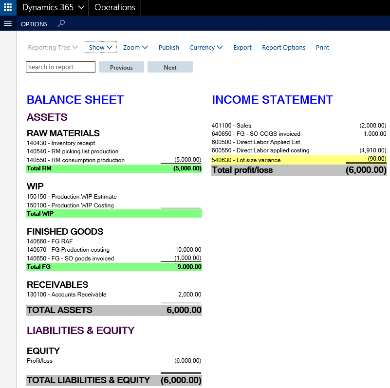 Aus Platz- und Vereinfachungsgründen wird die Einrichtung der für diese Aufteilung erforderliche Allokationsregeln nicht dargestellt und stattdessen auf die Ausführungen im ersten Beitrag dieser Reihe verwiesen. Wird die Allokationsregel schließlich verarbeitet, so ergibt sich das nachfolgende Bild in der Bilanz und GuV des Unternehmens.