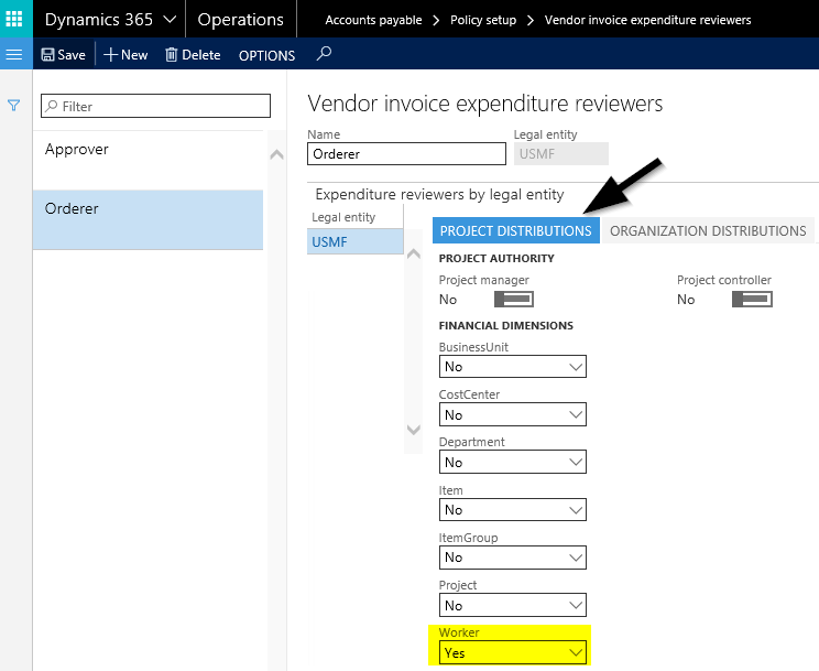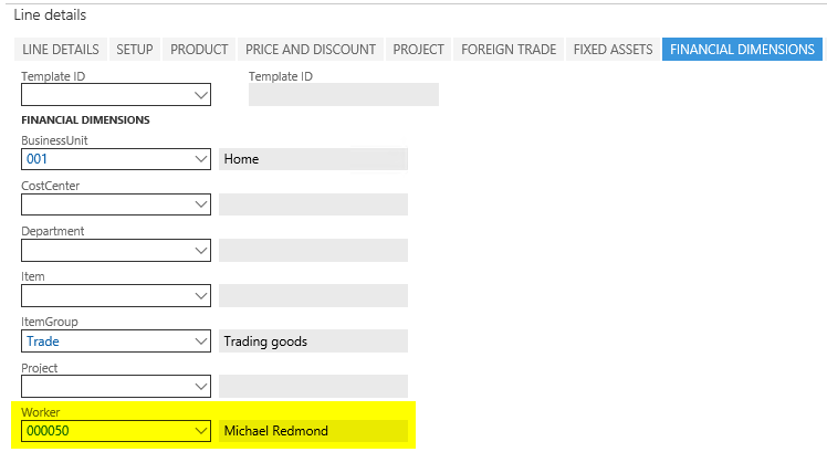 Aus diesem Grund wurde nun eine weitere Kreditorenrechnung – diesmal über $2000 – erfasst. Im Gegensatz zum weiter oben aufgezeigten Beispiel wurde nun allerdings Michael Redmond im Finanzdimensionsfeld für den Mitarbeiter hinterlegt, da er für die sachliche Prüfung der Rechnung zuständig ist.