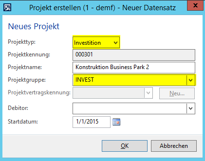 Nachdem eine Investitionsprojektgruppe eingerichtet wurde kann anschließend ein Investitionsprojekt angelegt werden …