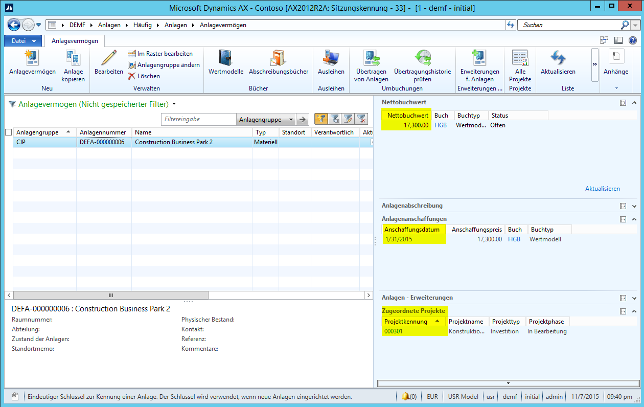Erfolgt hingegen im Laufe der Bauphase keine regelmäßige Vorkalkulation und Entfernung, so werden die Baukosten lediglich auf Bilanzkosten gesammelt und finden keine Aufnahme in den Standard Dynamics AX Anlagenspiegel, der somit verkürzt, d.h. falsch dargestellt wird. Um in solchen Fällen den Anlagenspiegel vollständig und richtig darzustellen ist es erforderlich diesen entweder über den Management Reporter abzubilden (siehe hierzu den vorherigen Blogbeitrag) oder eine Anpassung des Standard Anlagenspiegels umzusetzen.