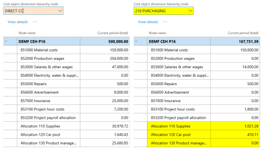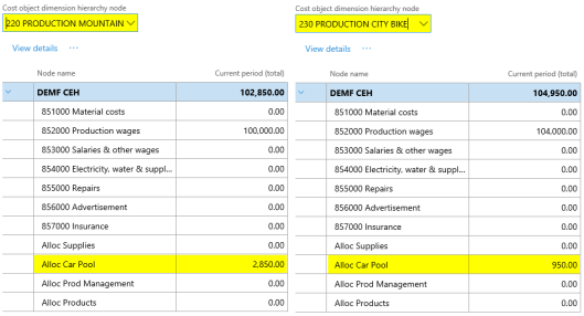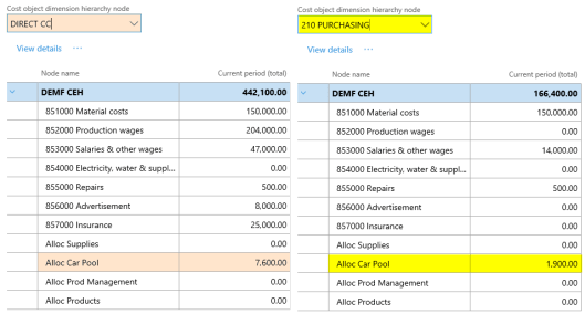 Die zweistufige Kostenratenermittlung lässt sich im gewählten Beispiel dadurch begründen, dass im Kostenrechnungsmodul lediglich die Restgemeinkosten der Car Pool Kostenstelle verarbeitet, d.h. umgelegt wurden. Da die eigentliche Kostenumlage bereits im Projektmodul stattfand, ist die dort verwendete Projektkostenrate zu der im Kostenrechnungsmodul ermittelten Rate hinzuzurechnen.