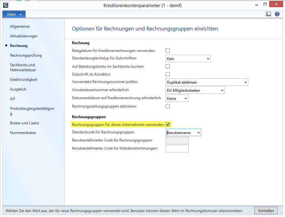 - Für den Fall das Rechnungen auch über Kreditorenrechnungsjournale erfasst werden sollen, ist alternativ eine Systemanpassung in Betracht zu ziehen.