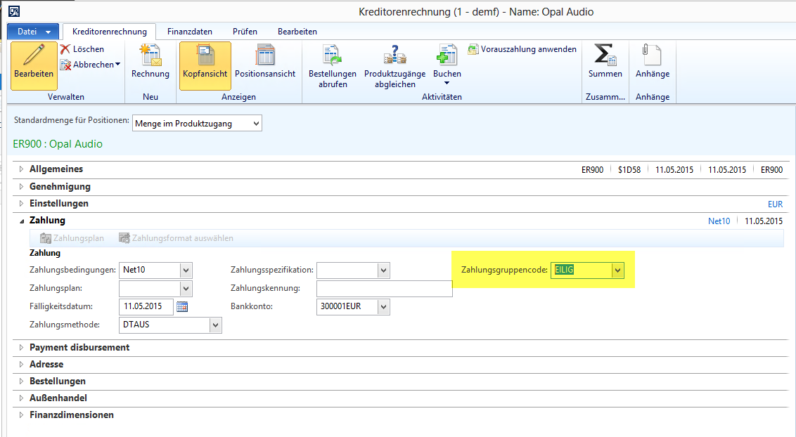 Das identifizierte Standardverhalten von Dynamics AX impliziert nun folgendes: