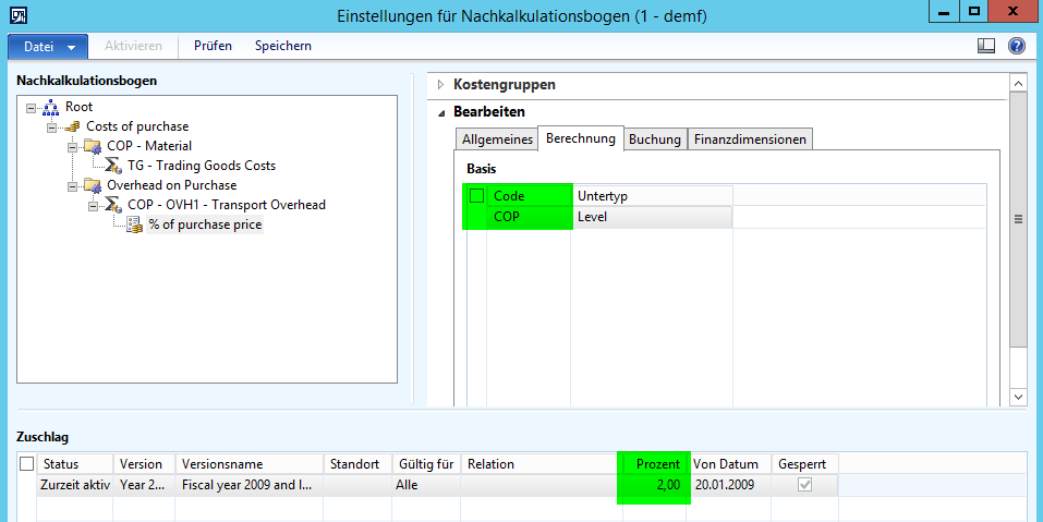 Aktivierung Frachtkosten, Anschaffungsnebenkosten, Dynamics AX 2012, Lagerbewertung